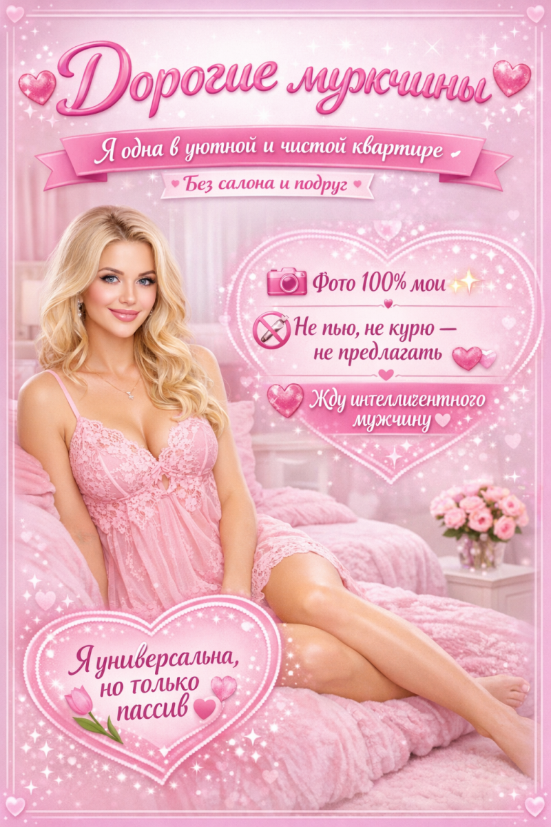 Для меня важны комфорт, качество и приятная обстановка. Вы платите не только за секс но и за атмосферу, внимание и наш общий приятный вечер.
